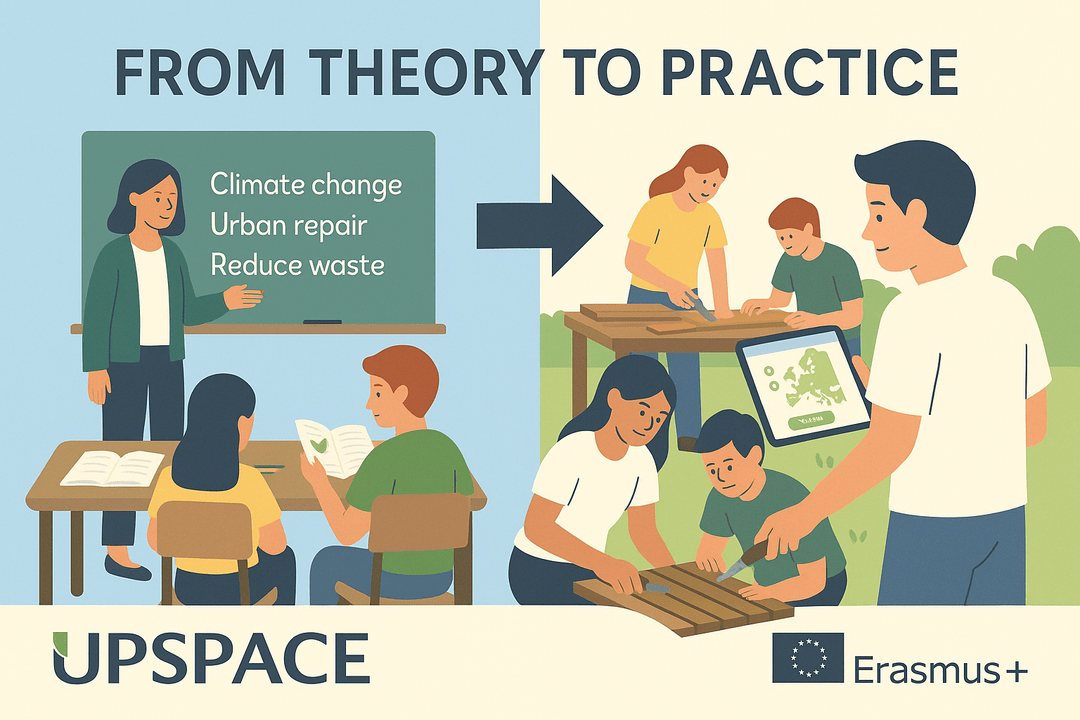 UpSpace is a small European project that combines 8 schools and local organisations into a consortium. Its aim is to make environmental issues part of the real work students do, in 4 countries, not just the subjects they study. Instead of reading about waste and pollution, students sort and reuse materials. Instead of only learning about sustainable cities, they take part in urban repair.